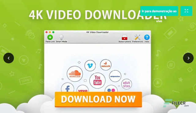 O 4K Video Downloader permite o download de vídeos, listas de reprodução, canais e legendas do YouTube, Facebook, Vimeo e outros sites de vídeo em alta qualidade.