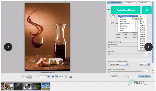Blow Up’s interface is deceptively simple. Just set your paper size as you would in Photoshop and optionally set a crop region. In version 3 we kept all the rocket science under the hood. You can resize up to 300,000 pixels per side, the maximum Photoshop can handle. Of course, Photoshop would choke on a square image that big, but if you are making a billboard that Photoshop can handle, so can Blow Up!