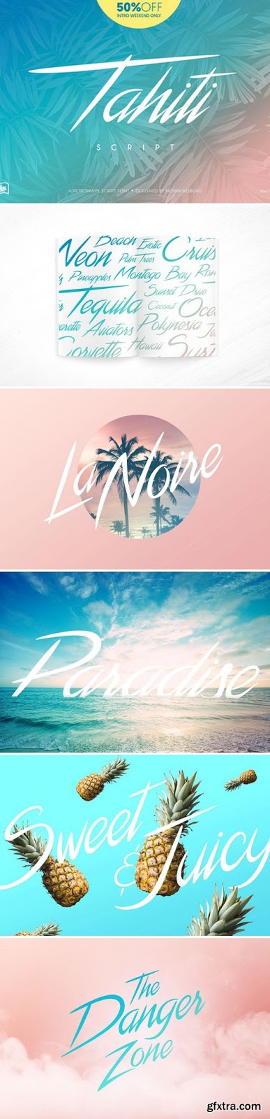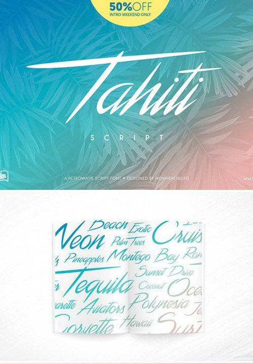 O NWB Tahiti Script é um tipo de letra com sabor dos anos 80, igualmente adequado para nichos, designs com temas retrô e marcas modernas, onde uma sensação elegante e arejada é desejada. Seus glifos com traços de tinta apresentam caracteres alternativos para uma variedade de visuais e ligaduras dinâmicas para otimizar certos pares de letras (T, L e “i_f”, apresentados acima).