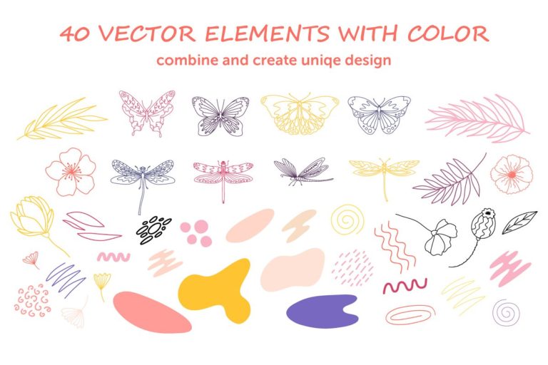 Todos os elementos naturais orgânicos são apresentados em 2 formatos: .ai e .png, com um fundo transparente. BÔNUS. Use designs pré-fabricados de 12 padrões naturais sem costura para economizar tempo. ? Que elementos gráficos naturais você obtém?