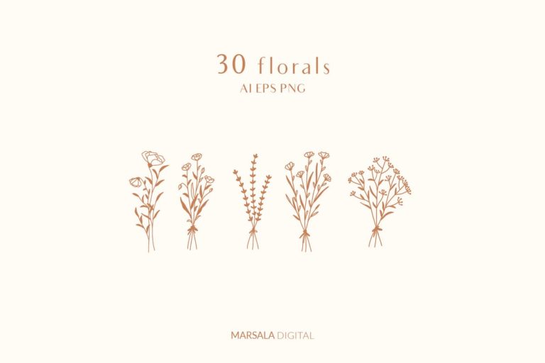 30 desenhos de arte botânica em linha (vector EPS, AI – PNG)