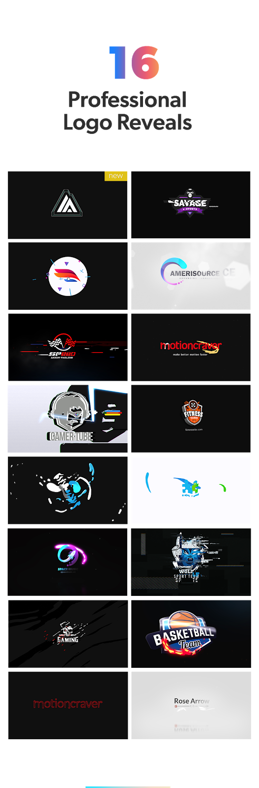 Crie uma introdução ao canal do YouTube ou uma revelação de logotipo atraente ou atraente para seu evento, marca ou empresa com este pacote profissional de animações de logotipo! Possui elementos de movimento, efeitos de falha, animações quadro a quadro, partículas, efeitos sonoros, planos de fundo e muito mais.