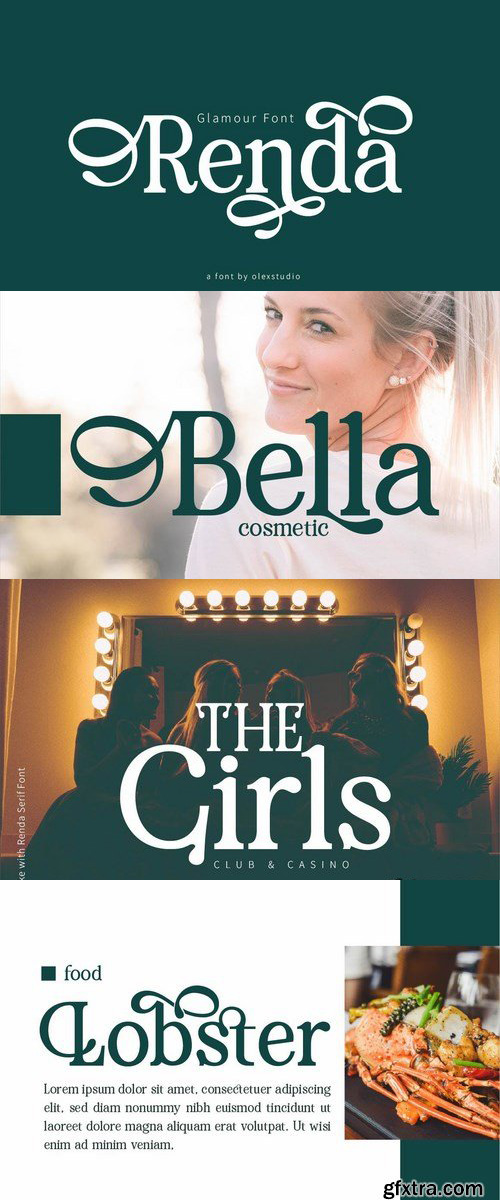 RENDA – Serif Font will look gorgeous on all your designs, invitation, poster design, book design, branding materials, logo’s, t-shirt and all project design other.