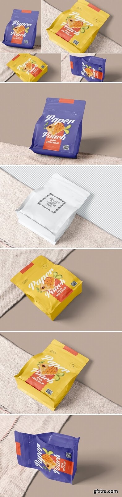 Use these sealed paper pouch mockups and give your branding designs a realistic look. Featuring smart object option and well named layers for all customizations need. Just use Photoshop for all personalizations and get your designs ready for presentation with a few clicks.