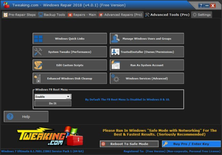 com – O Windows Repair é uma ferramenta de reparo completa para ajudar a corrigir uma grande maioria dos problemas conhecidos do Windows, incluindo erros de registro e permissões de arquivo, além de problemas com o Internet Explorer, Windows Update, Firewall do Windows e muito mais. O malware e os programas instalados podem modificar as configurações padrão. Usando o Reparo com – Windows, você terá a possibilidade de restaurar o seu sistema operacional para as configurações originais.